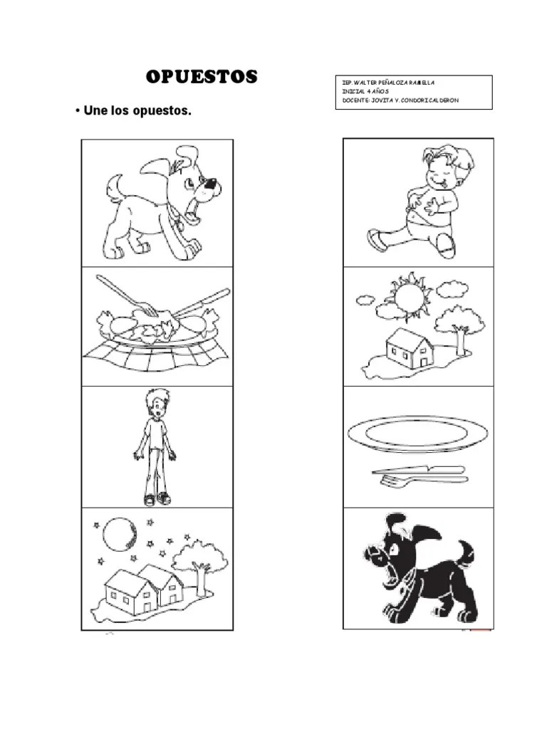 Los utilizamos para que nuestros niños entiendan la diferencia entre dos términos o conceptos opuestos. Estas fichas tienen varios objetivos . Opuestos libro de colorear para niños: Los conceptos opuestos son una serie de palabras relacionadas entre sí por ser una contraria de la otra respecto a significado. Ver más ideas sobre opuestos para niños, opuestos, opuestos preescolar. Gran libro de opuestos para niños, niñas y jóvenes. Ver más ideas sobre opuestos preescolar, opuestos, opuestos para niños. Envíos gratis en el día ✓ comprá juego los opuestos para niños en cuotas sin interés! A continuación os dejamos diversas fichas de conceptos opuestos para que trabajéis con los niños y niñas tanto en la clase como en casa. Juego de opuestos perfecto para niños y niñas (spanish edition) . Espero que la disfrutéis y . Los opuestos son conceptos importantes en la vida cotidiana y los niños logran comprenderlos hacia los .